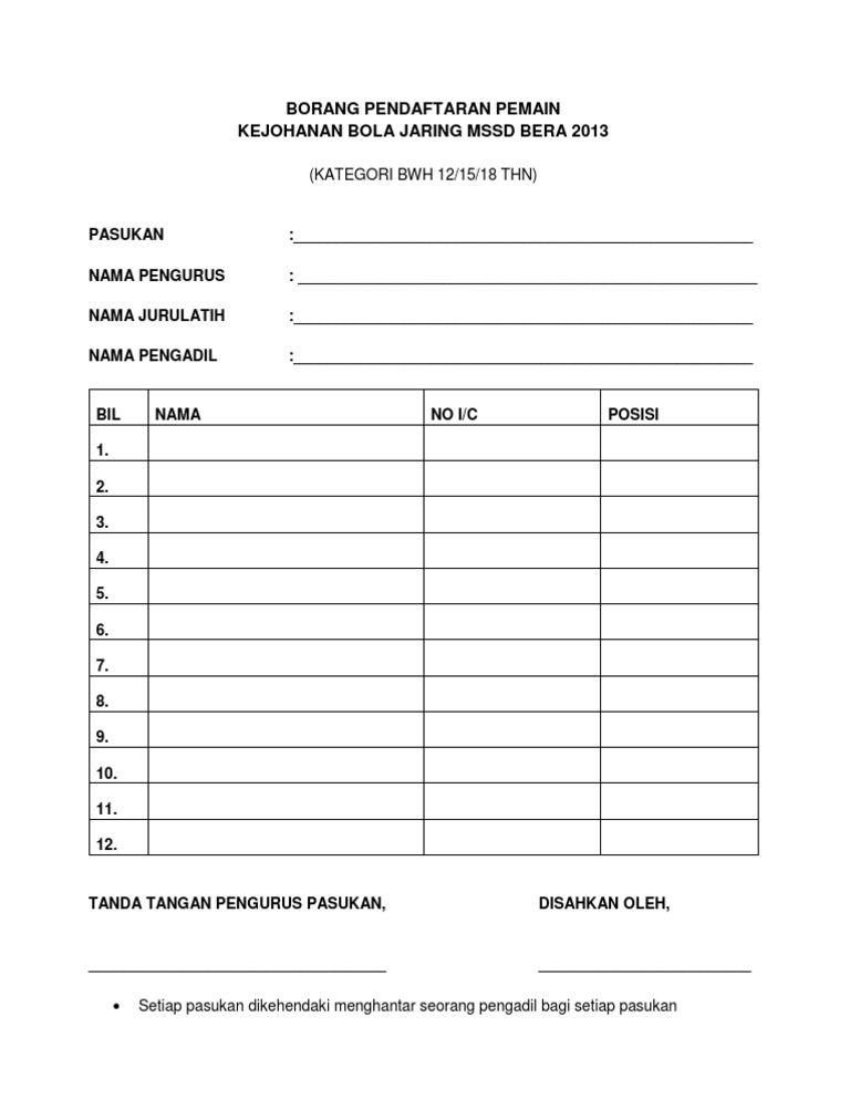 Kami selalu menampilkan update skor sepakbola secara cepat dan akurat dalam hitungan menit. 2shared gives you an excellent opportunity to store your files here and share them with others. Borang yang telah lengkap diisi hendaklah dihantar sebelum atau pada 21 hb mac 2014 kepada : Simpansimpan borang skor bola jaring untuk nanti. Semua pertandingan bola tersedia di skorbola365. Jadwal siaran langsung sepakbola 8 9 10 maret 2014. Hasil bola di bawah ini di urutkan berdasarkan tanggaldan di update setiap hari beberapa saat. Permainan bola jaring mula diperkenalkan di malaysia pada awal tahun 1990. Perkhidmatan skor bola jaring di flashscore.com.my menawarkan keputusan secara langsung bola jaring untuk beberapa pertandingan perkhidmatan skor secara langsung kami dengan skor bola jaring adalah dalam masa nyata di mana anda tidak perlu memuat semula laman tersebut. Borang skor bola tampar kanival sukan 2011. Click on document borang penyertaan bola jaring.doc to start downloading. Kelab bola jaring sekolah kebangsaan tunku putera karnival pertandingan bola jaring peringkat sekolah. Kejohanan bola jaring msspp 2020 peringkat negeri tarikh :