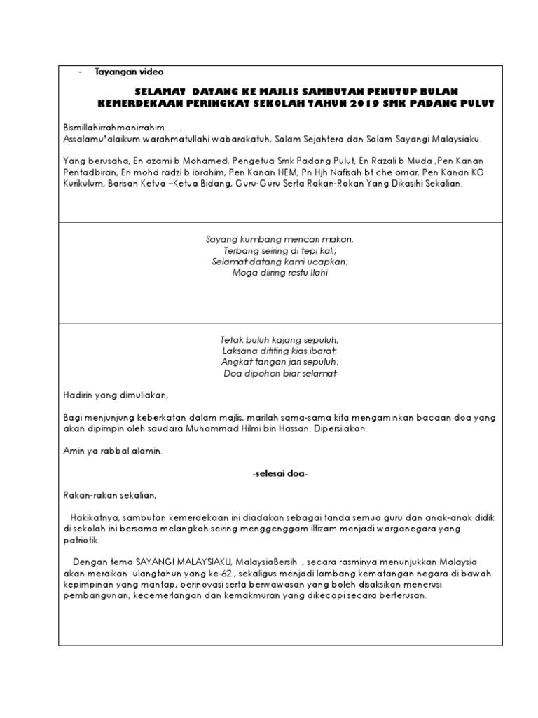 Hut ri adalah merayakan dalam sejarah momen hut dimana bangsa ri memproklamasikan pembebasan. Hari kemerdekaan 2019 memperkenalkan lagu tema bertajuk malaysia bersih yang dicipta oleh jadi kepada rakyat malaysia tanpa mengira kaum, agama, fahaman politik bersatulah dengan menunjukkan semangat patriotik sempena hari kemerdekaan 2019 ini. Lirik video malaysia bersih versi koir lagu tema h. Rakyat malaysia tidak lama lagi akan menyambut hari kebangsaan atau hari kemerdekaan pada 31 ogos setiap tahun. Download as docx, pdf or read online from scribd. Pada tahun ini, menteri komunikasi dan multimedia telah mengumumkan tema hari kemerdekaan pada 24 julai 2019 lalu adalah sayangi malaysiaku : Download lagu mp3 & video: Bunkface ciptaan sepenuhnya oleh : Nazhif211 311.093 views13 years ago. Albumbaru.com — hari kemerdekaan republik indonesia akan kita rayakan dalam beberapa hari lagi. Malaysia bersih, tahun 2018 adalah sayangi malaysiaku manakala pada tahun 2017 juga dikongsikan maksud logo sambutan beserta lirik lagu tema hari kemerdekaan kali ke 63 tahun 2020 dan maklumat acara perbarisan/ perarakan. Atas perhatian bapak/lbu, kami ucapkan terima kasih. Download lagu lagu tema kemerdekaan mp3 dapat kamu download secara gratis di metrolagu.