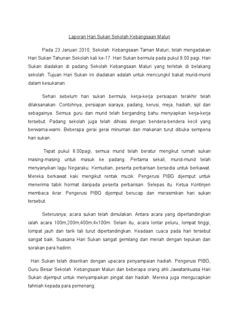 Laporan Sukan Sekolah / Contoh laporan hasil kegiatan ujian sekolah doc.
